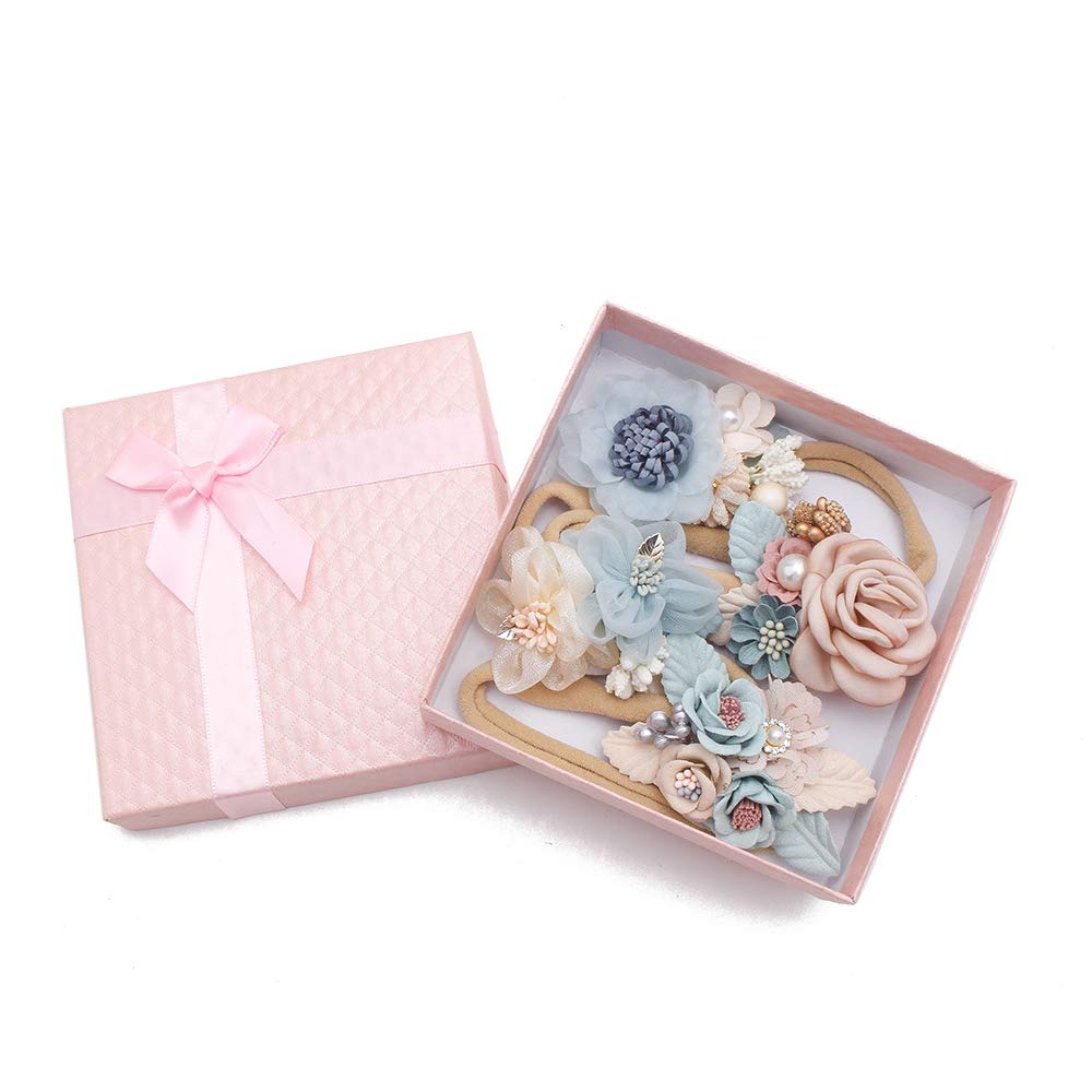 cherrboll 4pcs Baby Girl Headbands Flowers, Super Soft & Stretchy Nylon Floral Hairbands for Newborn Toddler
