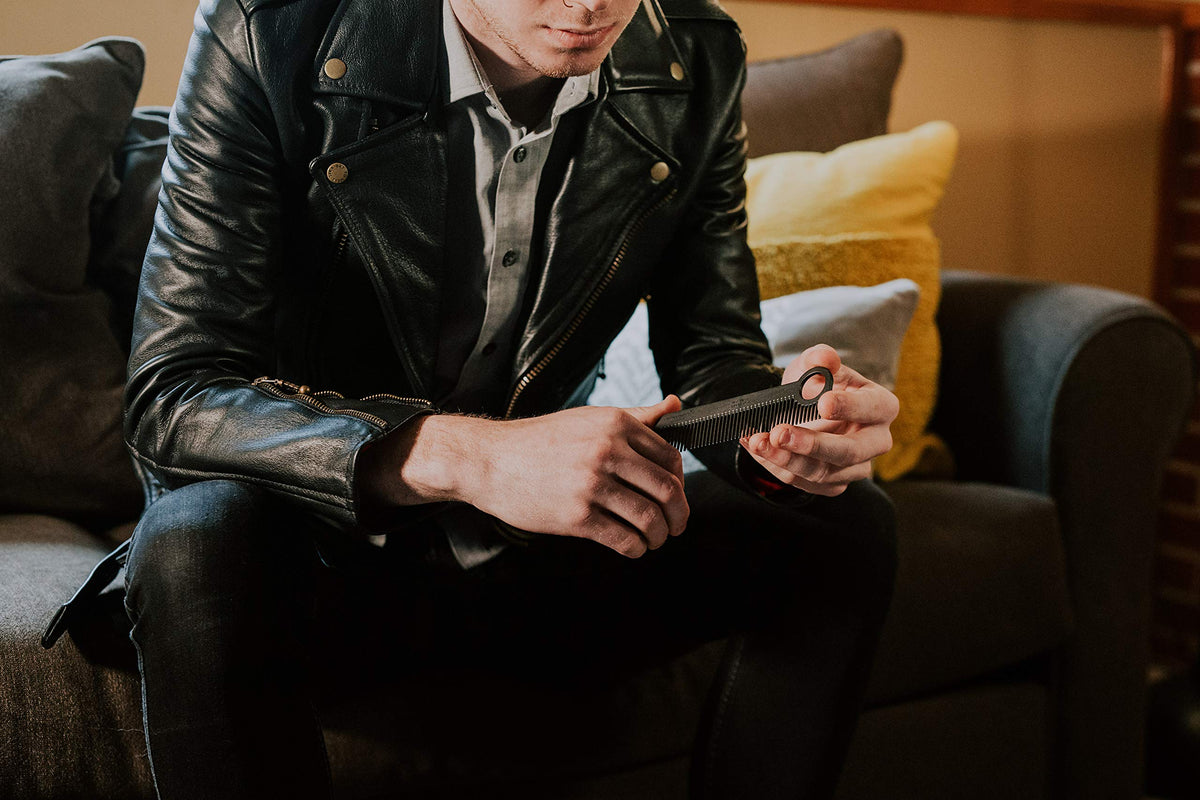 Chicago Comb Model 1 Carbon Fiber Comb is a premium grooming tool crafted for ultimate hair care. Made in the USA, this carbon fiber comb is lightweight, anti-static, and durable, providing a smooth and gentle combing experience for all hair types.