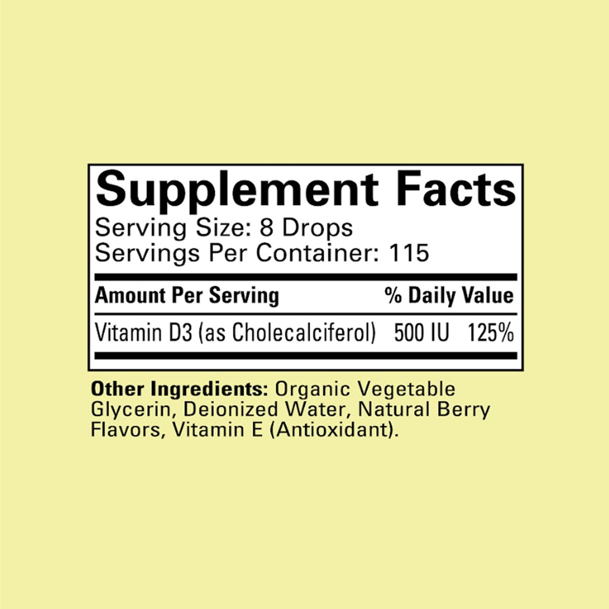 CHILDLIFE ESSENTIALS Vitamin D3 Drops - Vitamin D Drops for Infants, Baby Vitamin D Drops, Liquid Vitamin D for Kids, Toddlers 1-3, Children, 500 IU Per Serving - Natural Berry, 1 Fl Oz (Pack of 3)
