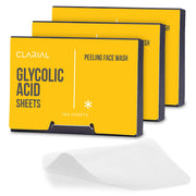 CLARIAL Glycolic Acid Soap Sheets - 100 Exfoliating Peel Face Wash - Travel Size Facial Cleanser with Vitamin C, Retinol, Kojic Acid, Collagen - Anti Aging and Minimizes Pores and Scars - 3 Pack