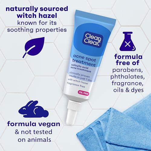 Clean & Clear Acne Spot Treatment Gel Cream with 2% Salicylic Acid is an oil-free topical acne treatment that provides clinically proven results in just 1 day. This fragrance-free formula in a 0.75 fl. oz tube is your solution for clear skin.