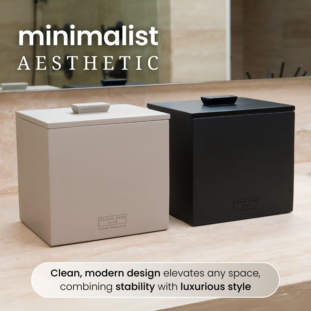 CLEAN SKIN CLUB Cement Box for 50 Disposable Clean Towels XL (Towels NOT Included), Concrete Container for Face Towelettes Bathroom Counter Storage, Cleansing Facial Dry Wipes - Matte Onyx
