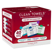 The Clean Towels Holiday Gift Box includes 40 single-use face towels across four variants, packed in a beautiful limited-edition holiday box for a lavish self-care experience.