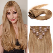 Clip in 100% Remy Human Hair Extensions 8-24 Grade 7A Quality Full Head 8pcs 18clips Long Soft Silky Straight for Women Fashion 13/13 inch 80g, 27 Dark Blonde