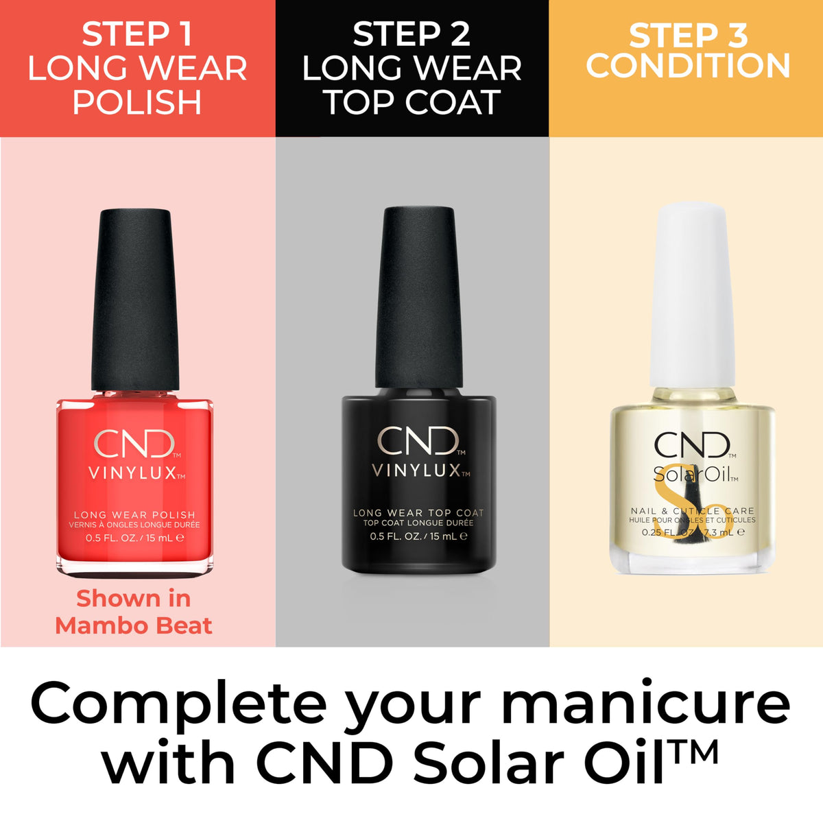 Short Product Description :: CND VINYLUX Long Wear Polish is not just regular polish. It's a 2-step long wear polish that is fast drying and provides 7+ days of chip resistant, high shine wear—no base coat needed.