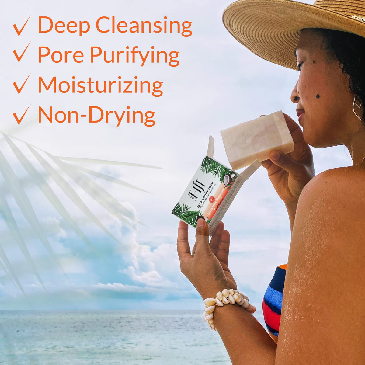 Coco Fiji Soap Bar is infused with organic coconut oil and lemongrass tangerine essential oil for a moisturizing and pore-purifying skin experience. Enjoy the natural benefits of coconut oil in a refreshing soap bar.