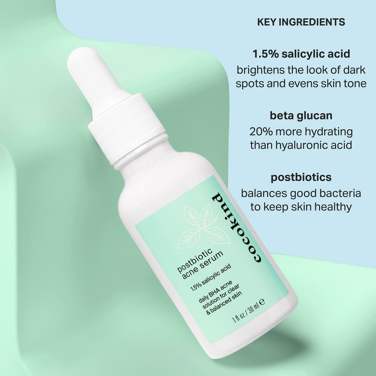Cocokind Postbiotic Acne Serum, Salicylic Acid Serum and BHA Liquid Exfoliant - Exfoliating, Brightening and Hydrating Serum