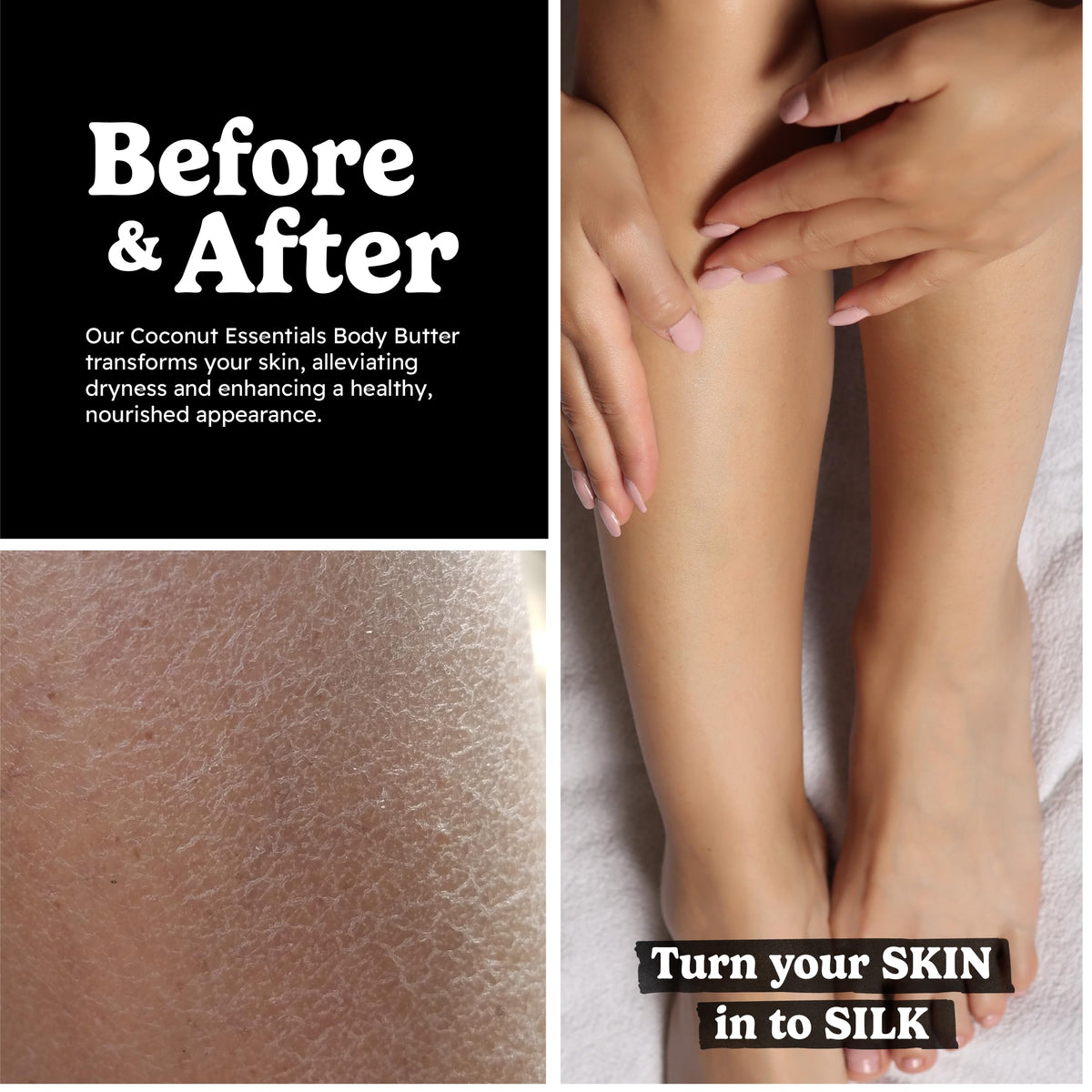 Coconut Essentials Moisturizing Body Butter is a gluten and paraben-free lotion enriched with coconut oil, shea butter, and other natural ingredients for beautiful and glowing skin.