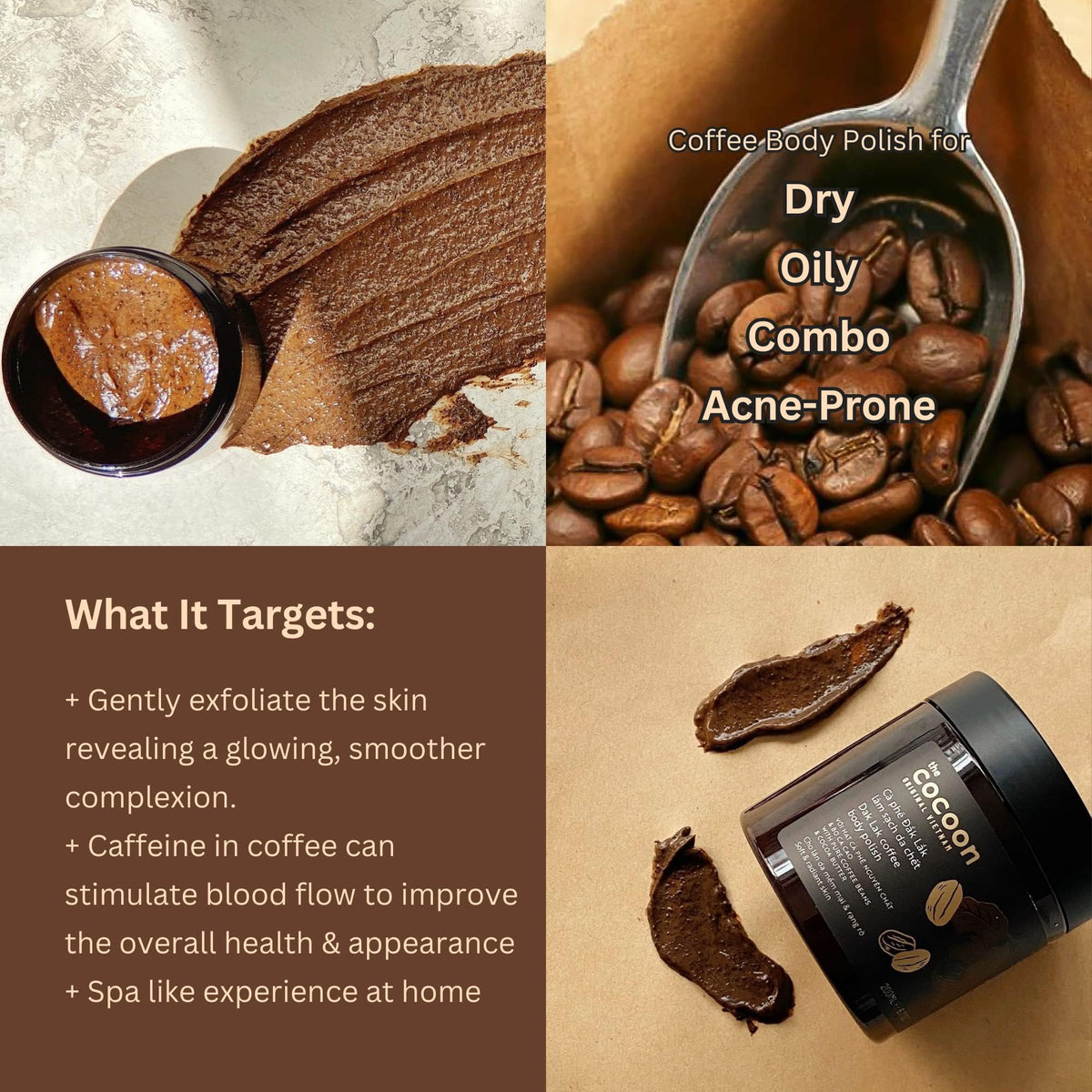 Cocoon Dak Lak Coffee Body Polish with Coconut & Shea Butter. 100% Vegan Exfoliating Scrub for Smooth & Glowing Skins | Reduce Stretch Marks, Acne & Cellulite | Gift for Coffee Lovers (6.76 fl oz)