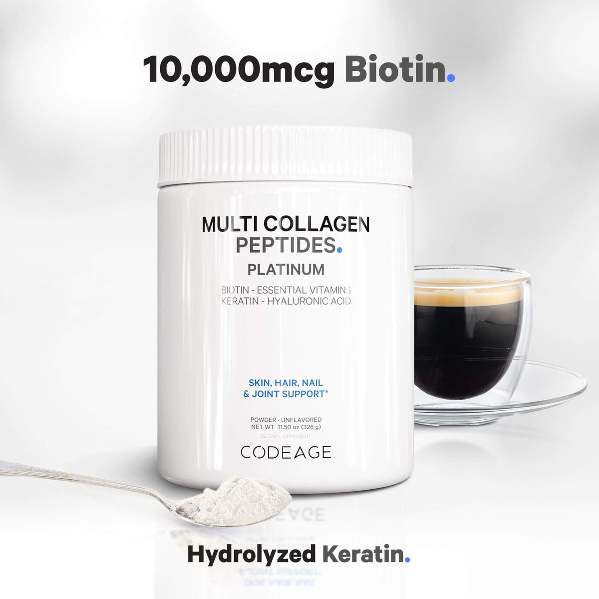 Discover the power of Codeage Multi Collagen for Women & Men. This unflavored protein powder enriched with biotin, vitamin C, and hyaluronic acid offers 5 types of hydrolyzed collagen to support skin, hair, and joint health.