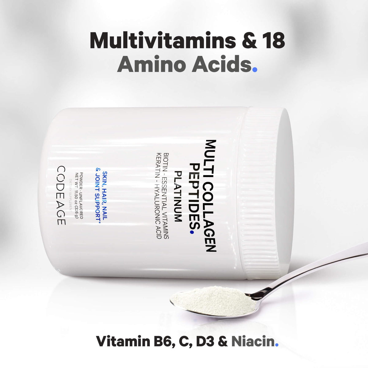 Adults mix 1 scoop daily of Codeage Multi Collagen Platinum Edition powder with 8 ounces of your favorite beverage, coffee, smoothies baked treats to upgrade your diet. Do not exceed the recommended dose.