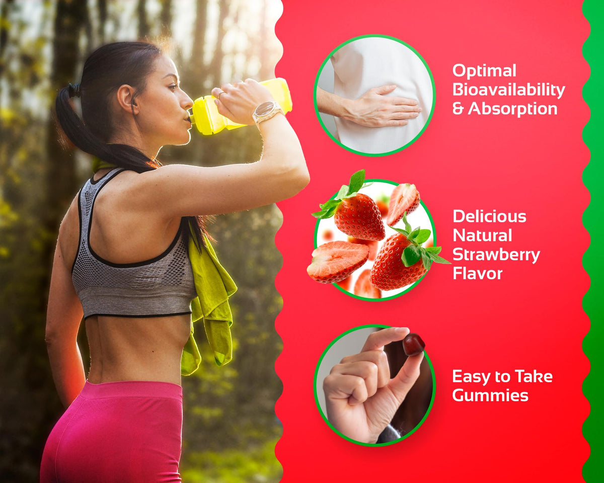 CogniTune Methylfolate Gummies are high-potency folate supplements designed for brain, heart health, and immunity. These delicious strawberry-flavored gummies are non-GMO, vegan, and gluten-free.