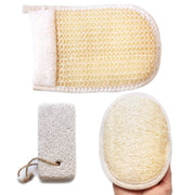 Experience spa-like luxury at home with the Coimoon Set. This 3-piece set includes exfoliating organic loofah face pads, a shower sponge with natural pumice stone, and a loofa puff sponge scrubber, offering a complete body care solution for both men and women.