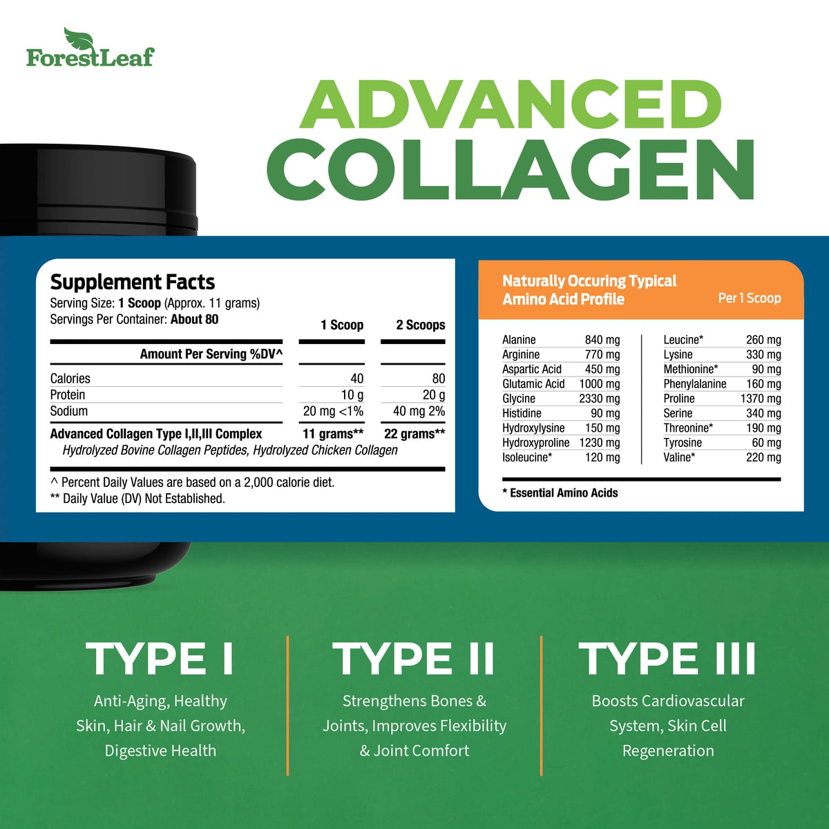 Ingredients: Advanced Collagen Type I, II, III Complex. Pure Hydrolyzed GrassFed PastureRaised Bovine Collagen Peptides, Hydrolyzed Chicken Cartilage Collagen
