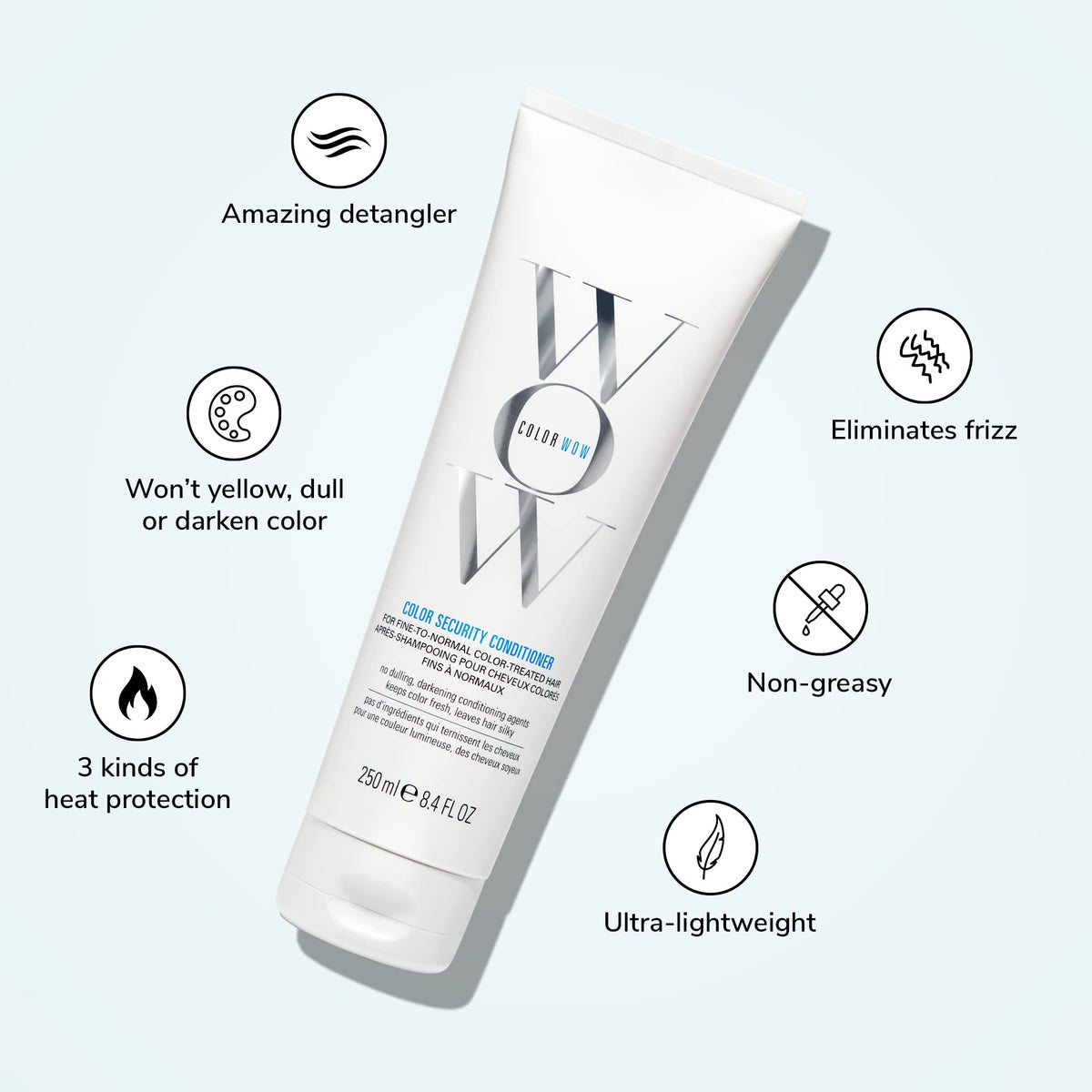 COLOR WOW Color Security Conditioner is specially formulated for fine to normal hair types. This conditioner nourishes and protects your hair color, leaving it vibrant and silky smooth.