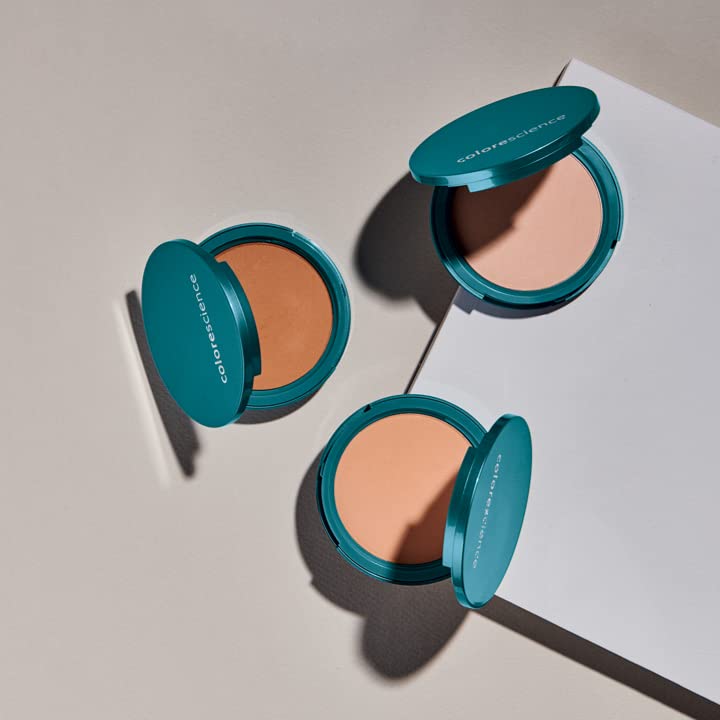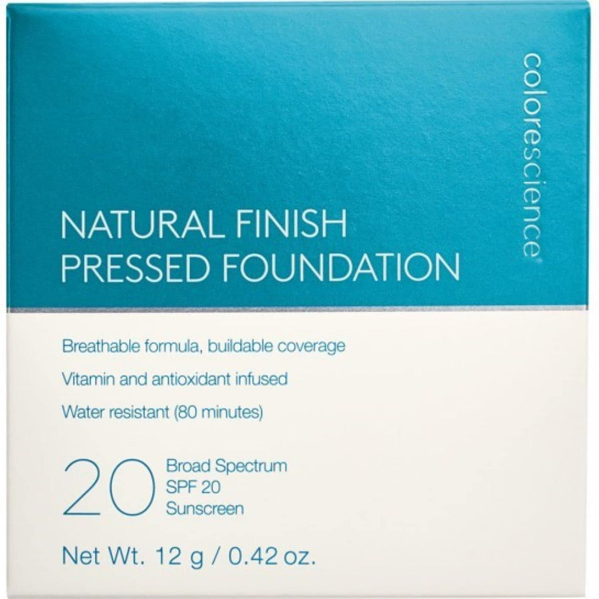 Colorescience Natural Finish Pressed Foundation SPF 20 in Medium Sand offers buildable coverage with sun protection. This foundation evens out skin tone and provides a natural finish.
