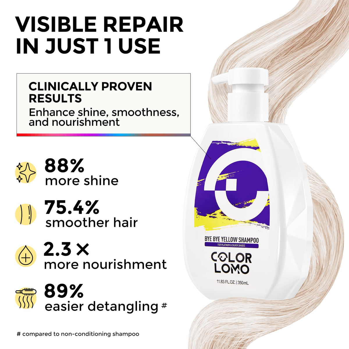 COLORLOMO Bye Bye Yellow Purple Shampoo, Neutralizes Brass & Yellow Tones, Sulfate Free, For Color Treated, Blonde, Bleached, Highlighted Brown or Silver Hair, 11. 83 Fl Oz