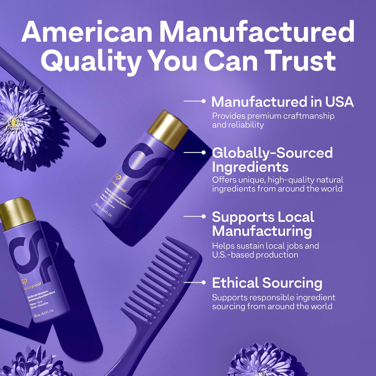 Material Feature :: Violet pigment for brassy tone neutralization, nourishing and softening safflower and marula oils, strengthening biotin, and nanotechnology