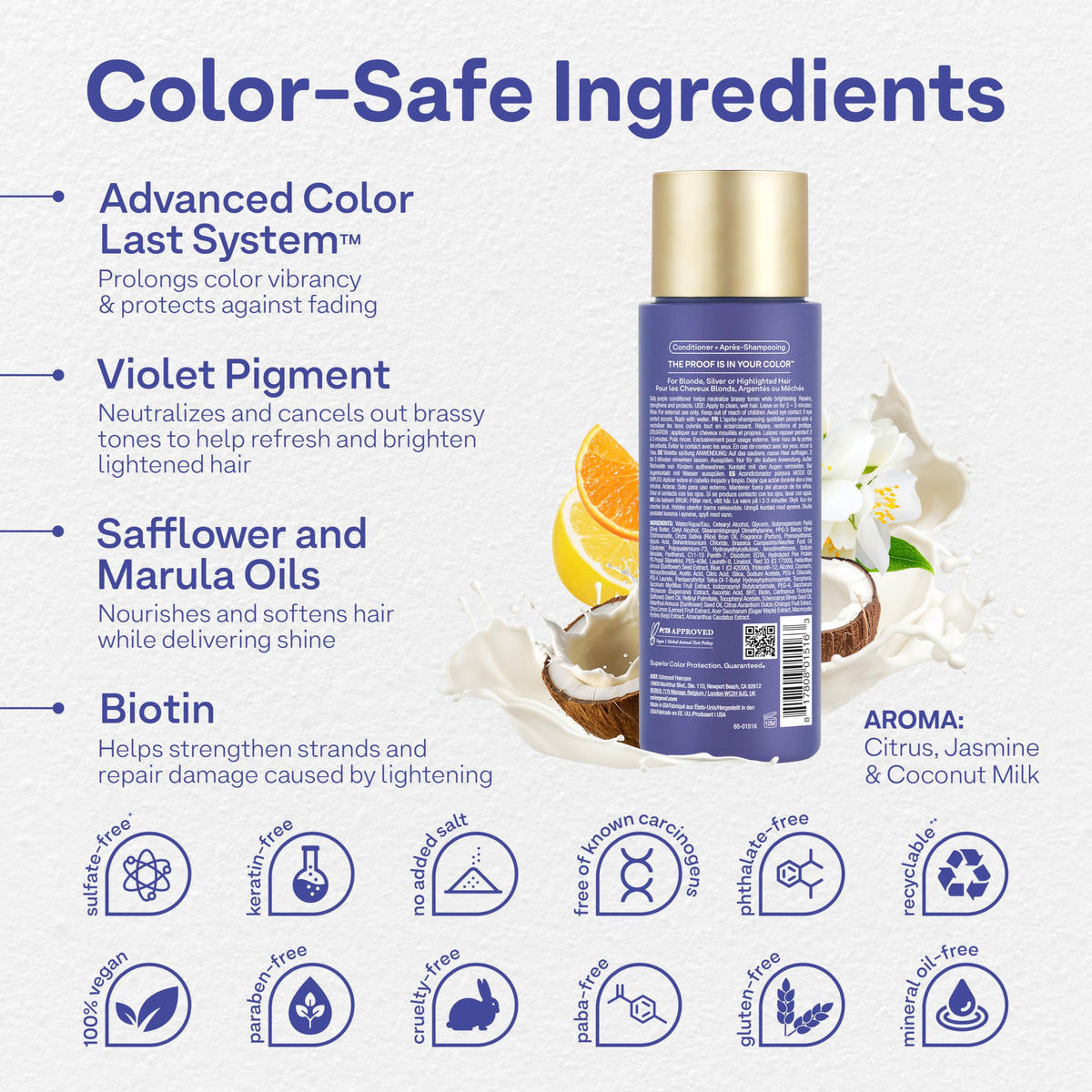 Colorproof Daily Blonde Conditioner 8.5 Fl. Oz. Purple Conditioner for Blonde Hair with Citrus, Jasmine & Coconut Milk Scent, Sulfate Free Conditioner for Detangling and Toning