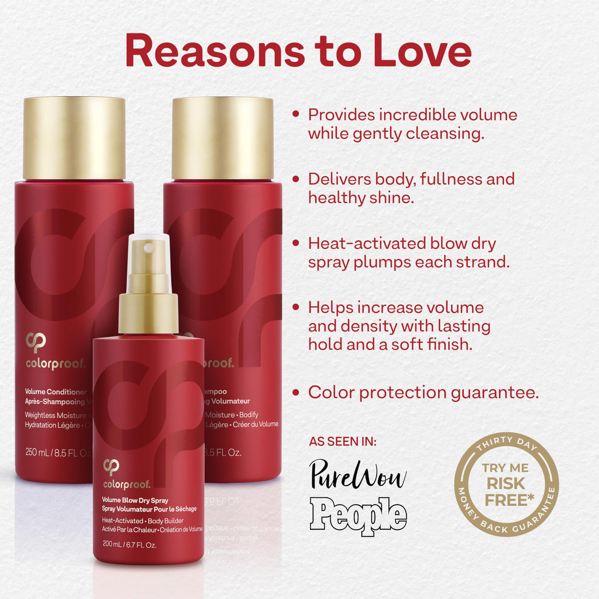 Short Product Description :: Celebrate the holidays with Colorproof Volume Gift Set — featuring the Volume Shampoo, Conditioner, and Blow Dry Spray. This luxurious hair volumizer set adds body, weightless hydration, and vibrant color protection for fine, color-treated hair.