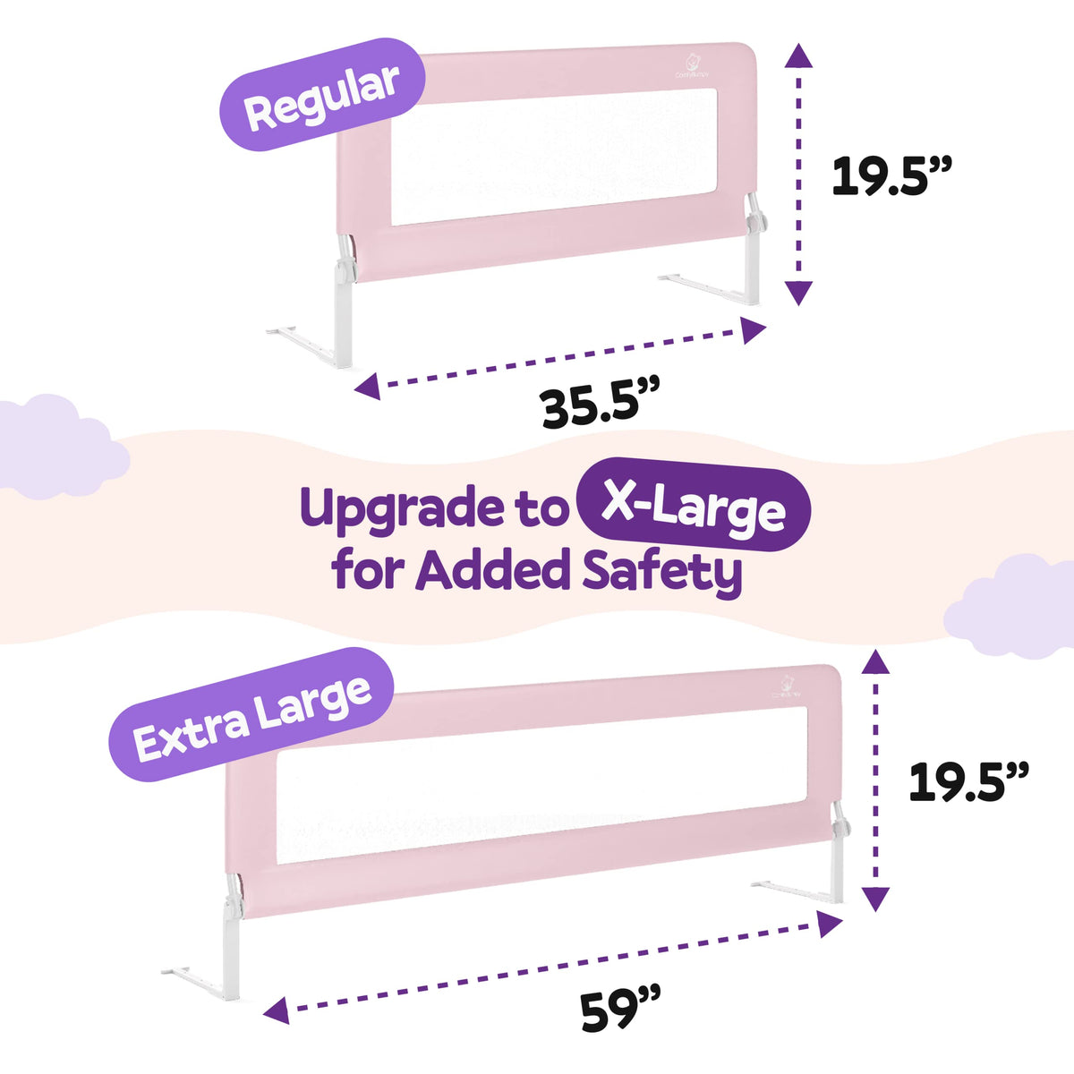 ComfyBumpy Bed Rail for Toddlers | Bed Rails for Kids, Twin, Full, Queen & King Size Bed - Adjustable Toddler Bed Rail Guard - Swing Down Baby Bed Side Rail - Pink, Regular (35.5 x 19.5), Pack of 1