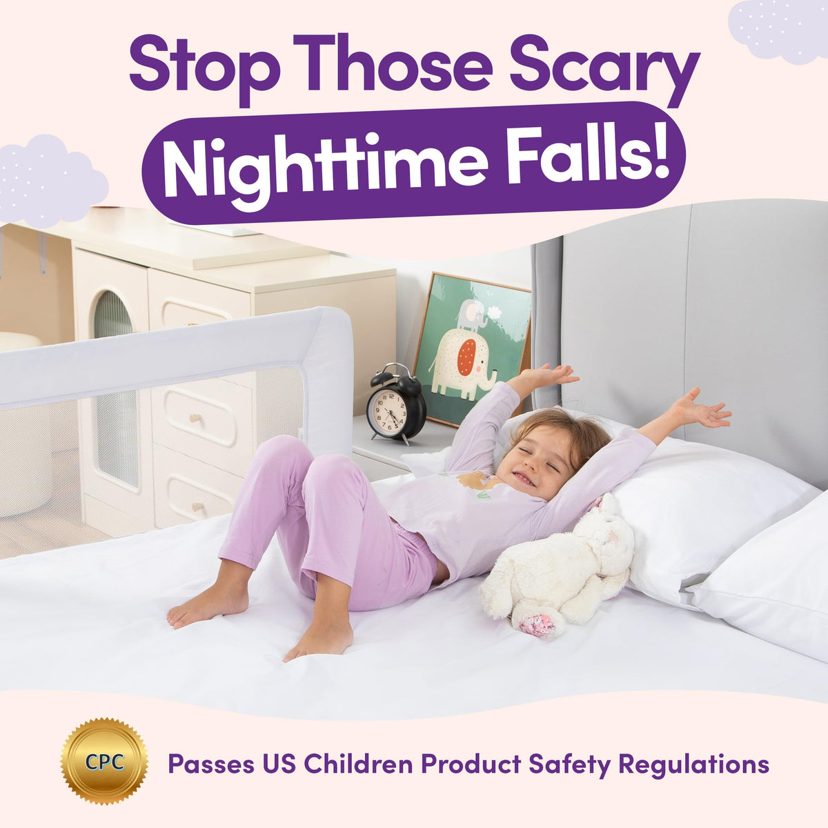 Ensure your toddler's safety with the ComfyBumpy Bed Rail. This swing-down rail guard is designed to fit twin, full, and toddler mattress sizes, providing a secure barrier to prevent falls and give you peace of mind.