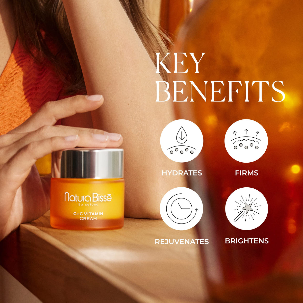 Natura Bissé C+C Vitamin Cream for anti-aging and firming benefits. Rejuvenates and brightens the skin while providing essential hydration.