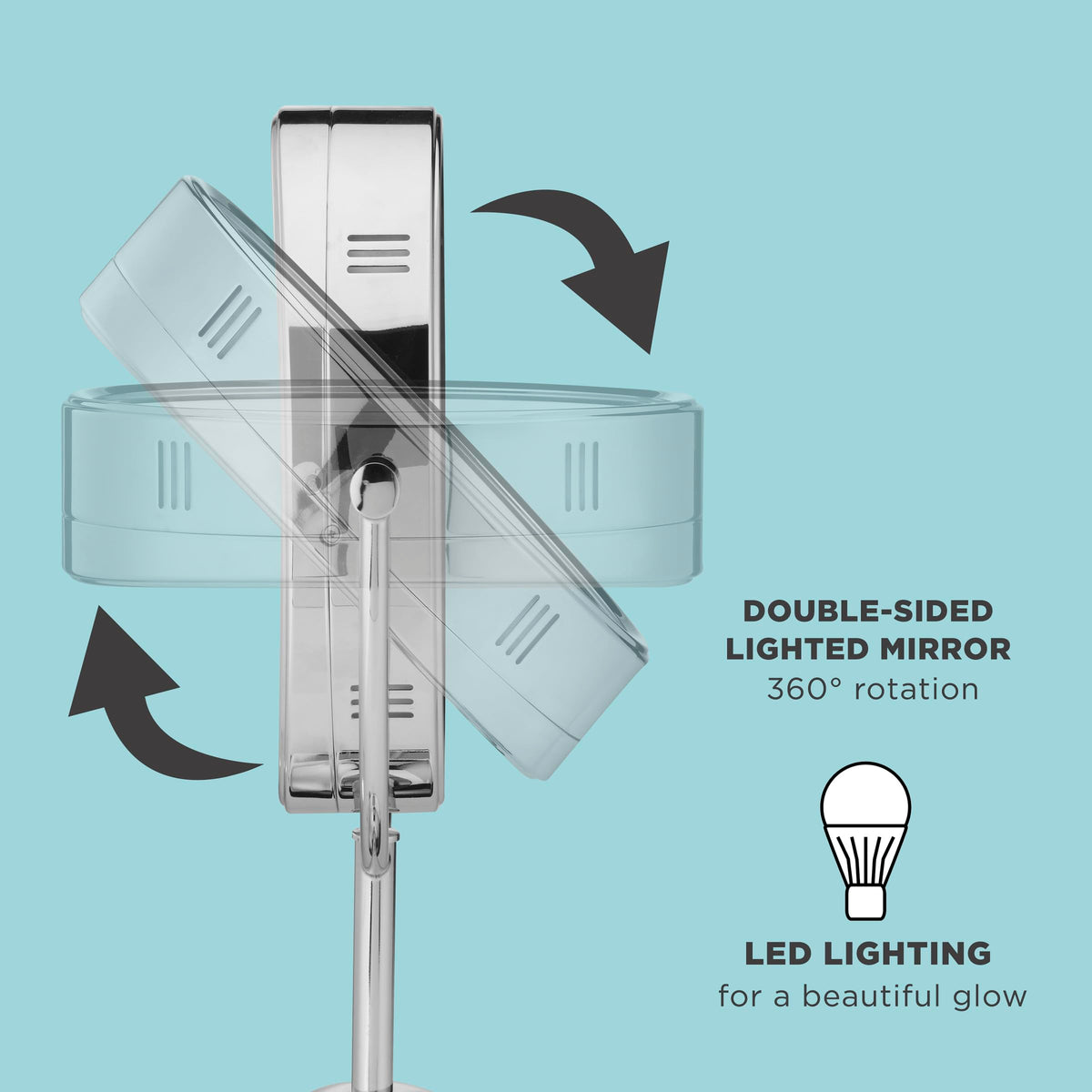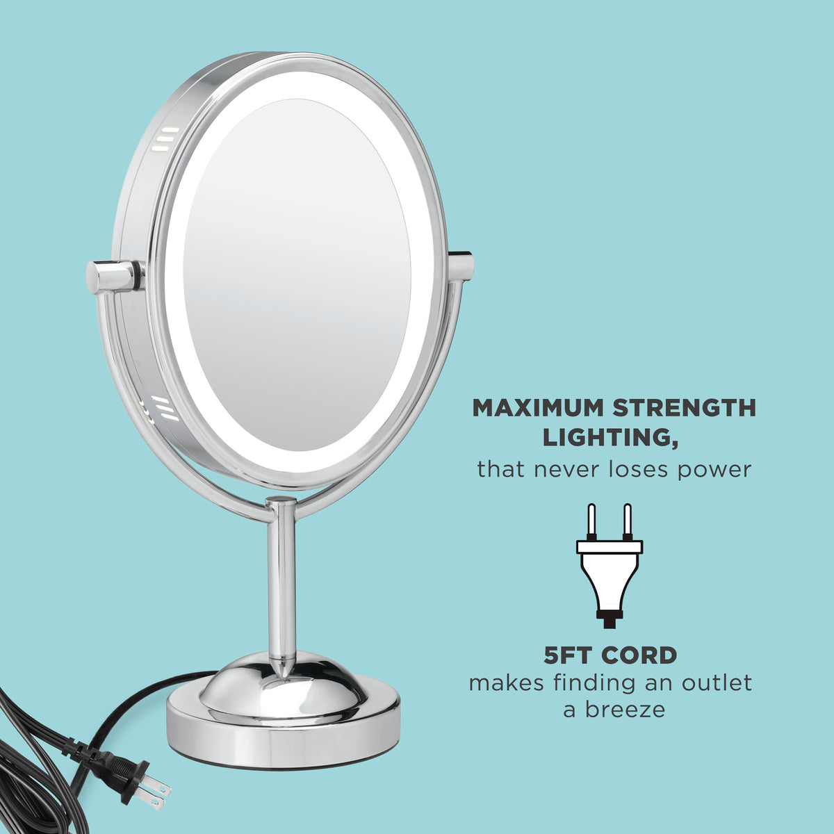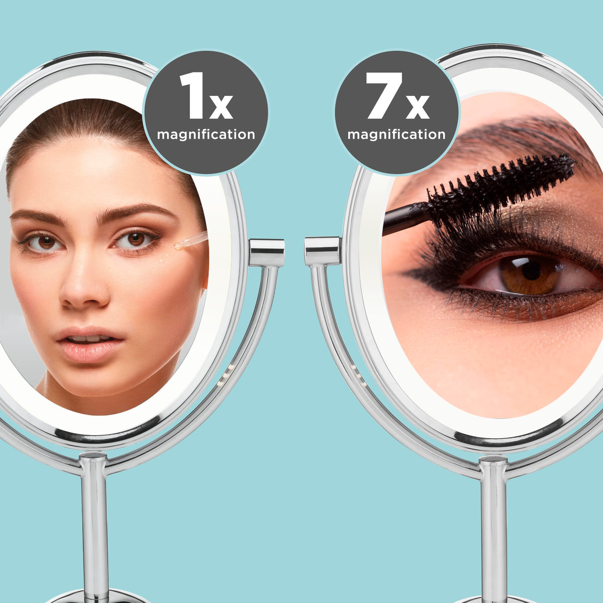 | included components | Conair Reflections DoubleSided Lighted Vanity Makeup Mirror, 1x7x magnification, Polished Chrome |
