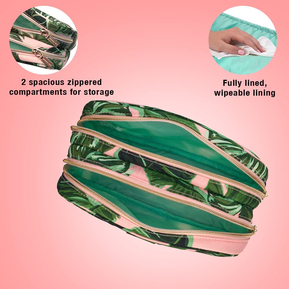 Stay organized on your travels with the Conair Makeup Bag. This double zip organizer in Pink Palm Print is perfect for storing your toiletries and cosmetics, ensuring you have all your essentials in one stylish and functional bag.
