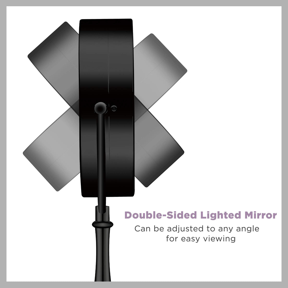 Illuminate your beauty routine with the Conair Tabletop Mount Reflections Double-sided Vanity Makeup Mirror. This matte black mirror features 1x and 7x magnification, perfect for detailed grooming and makeup application.