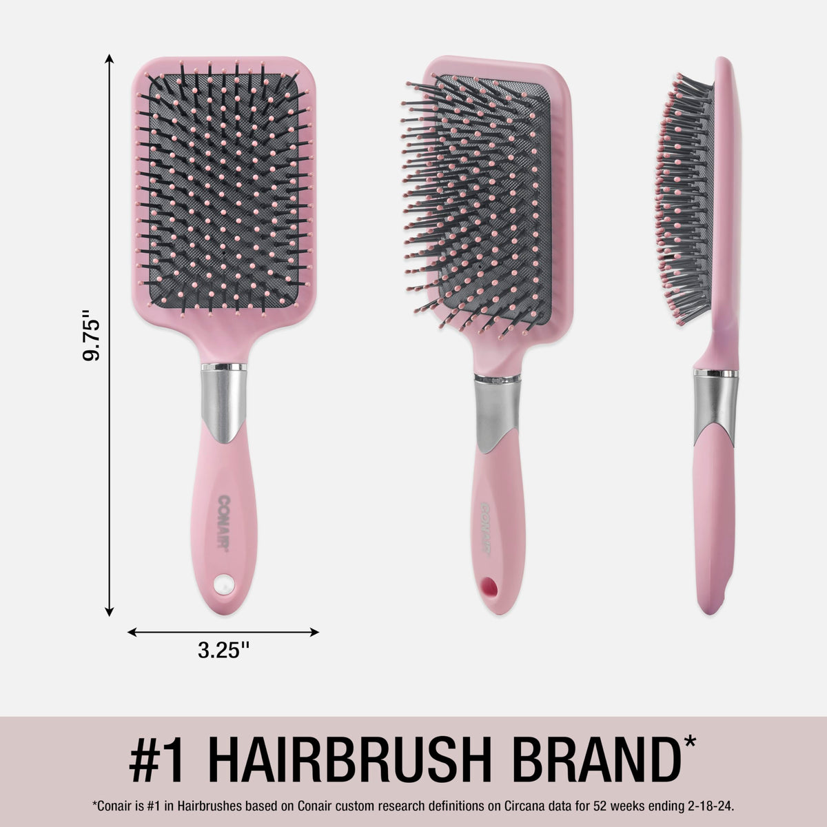 Conair Velvet Touch Paddle Cushion hair brush - Detangling hairbrush - curly or straight styles - men or women - detangler - features soft touch handle - Blush Pink