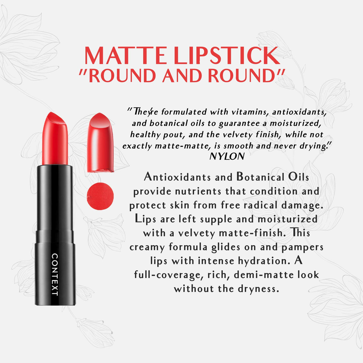| color | Context Skin Matte Lipstick For Women Velvety Finish Nourish Hydrate Lips Moisturizing Lipstick with Antioxidants Botanical Oils Long Lasting Matte Lipstick 0.12 oz, Round and Round |