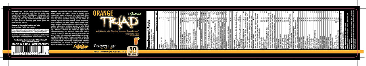 Promote your overall health and well-being with CONTROLLED LABS Orange Triad Plus Greens. This iron-free sports supplement is designed to support digestion, immune system, and joint health, providing a comprehensive multivitamin solution for men and women.