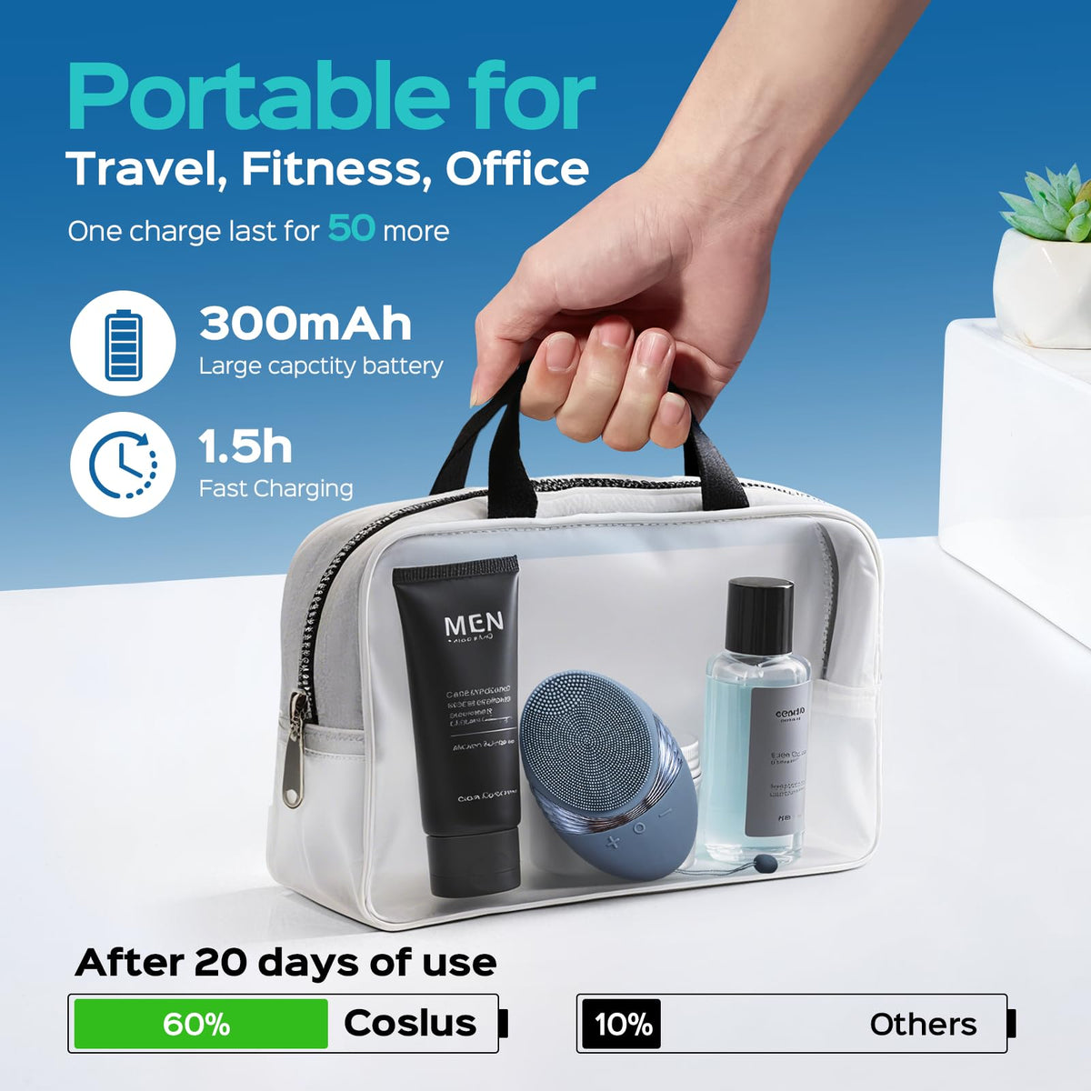 COSLUS Silicone Face Scrubber is a versatile facial cleansing brush designed for men. With 5 cleansing modes, it offers deep cleansing and gentle exfoliation, ideal for beard care and sensitive skin. This waterproof and portable scrubber is perfect for use in the shower or while traveling.