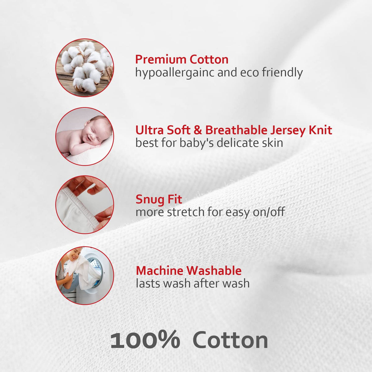 Cotton Changing Pad Cover White 2 Pack is designed for standard baby changing pads. These soft and breathable covers offer comfort and protection for your little one during diaper changes.