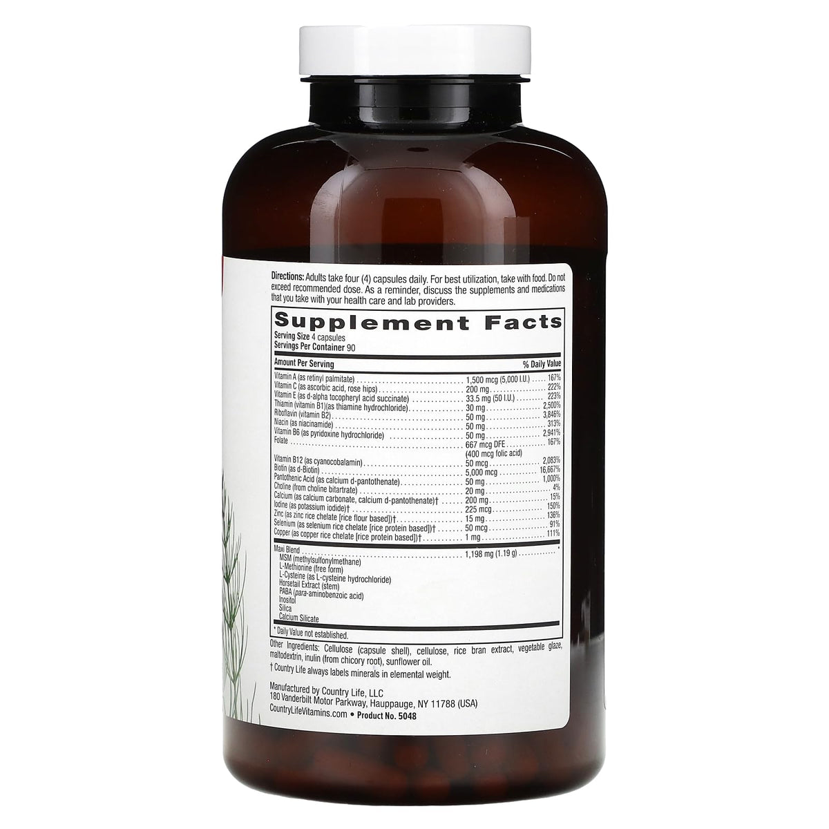 Country Life Maxi-Hair Plus 5000 mcg Biotin, 360 Capsules, Certified Gluten Free, Certified Vegetarian