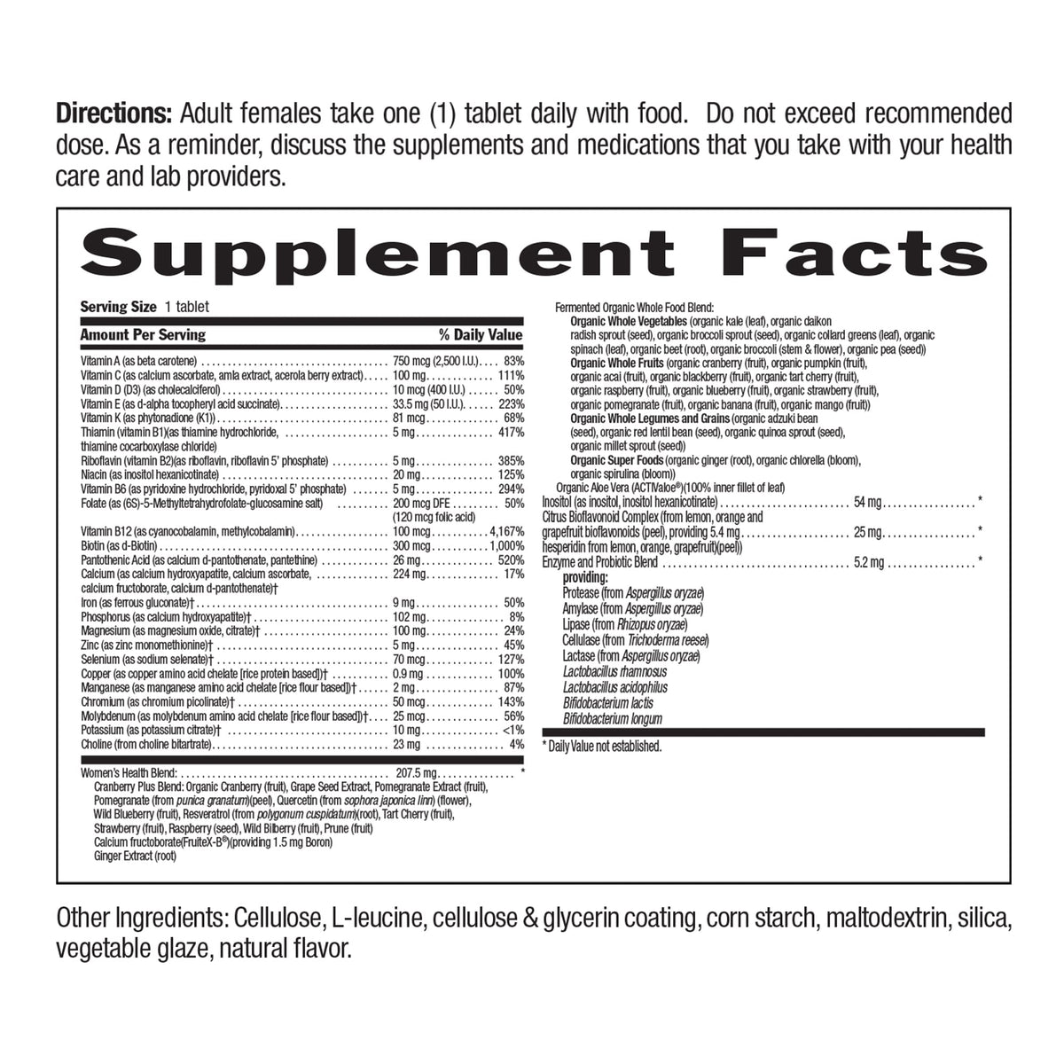Directions :: Adult females take one (1) tablet daily with food. Do not exceed recommended dose. As a reminder, discuss the supplements and medications that you take with your health care providers.