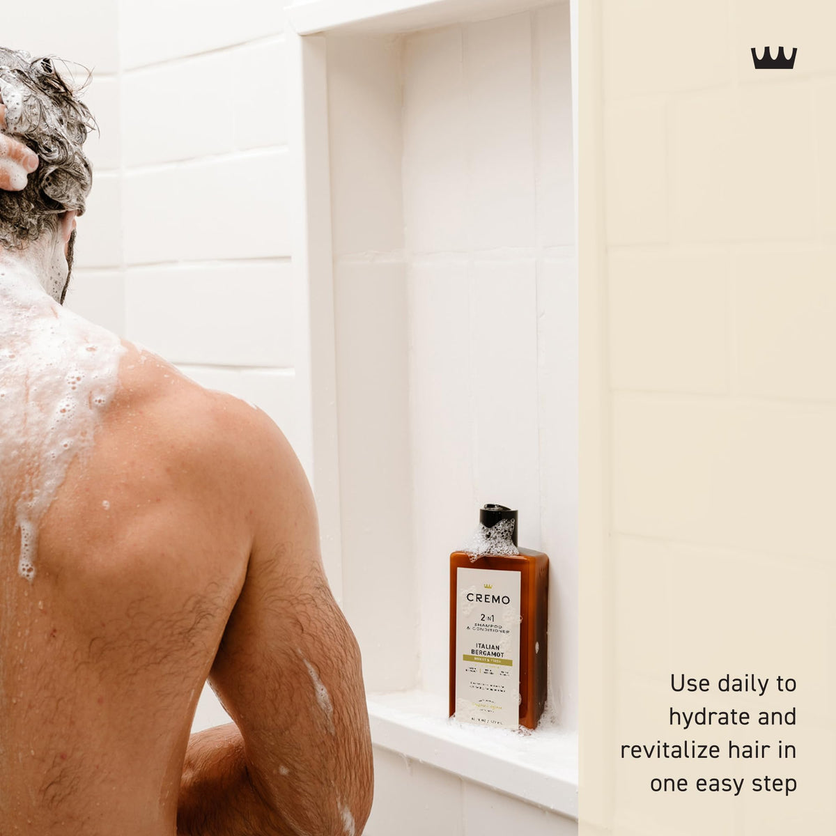 Cremo Italian Bergamot 2 in 1 Shampoo & Conditioner for Men, Notes of Italian Bergamot, Neroli Blossom, and Fresh Vetiver, 16 Fl Oz