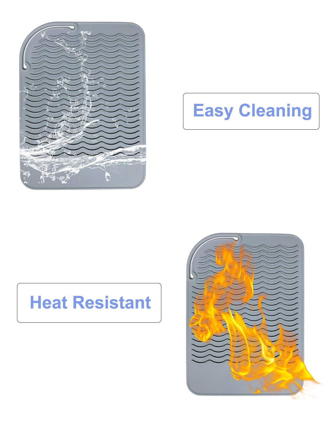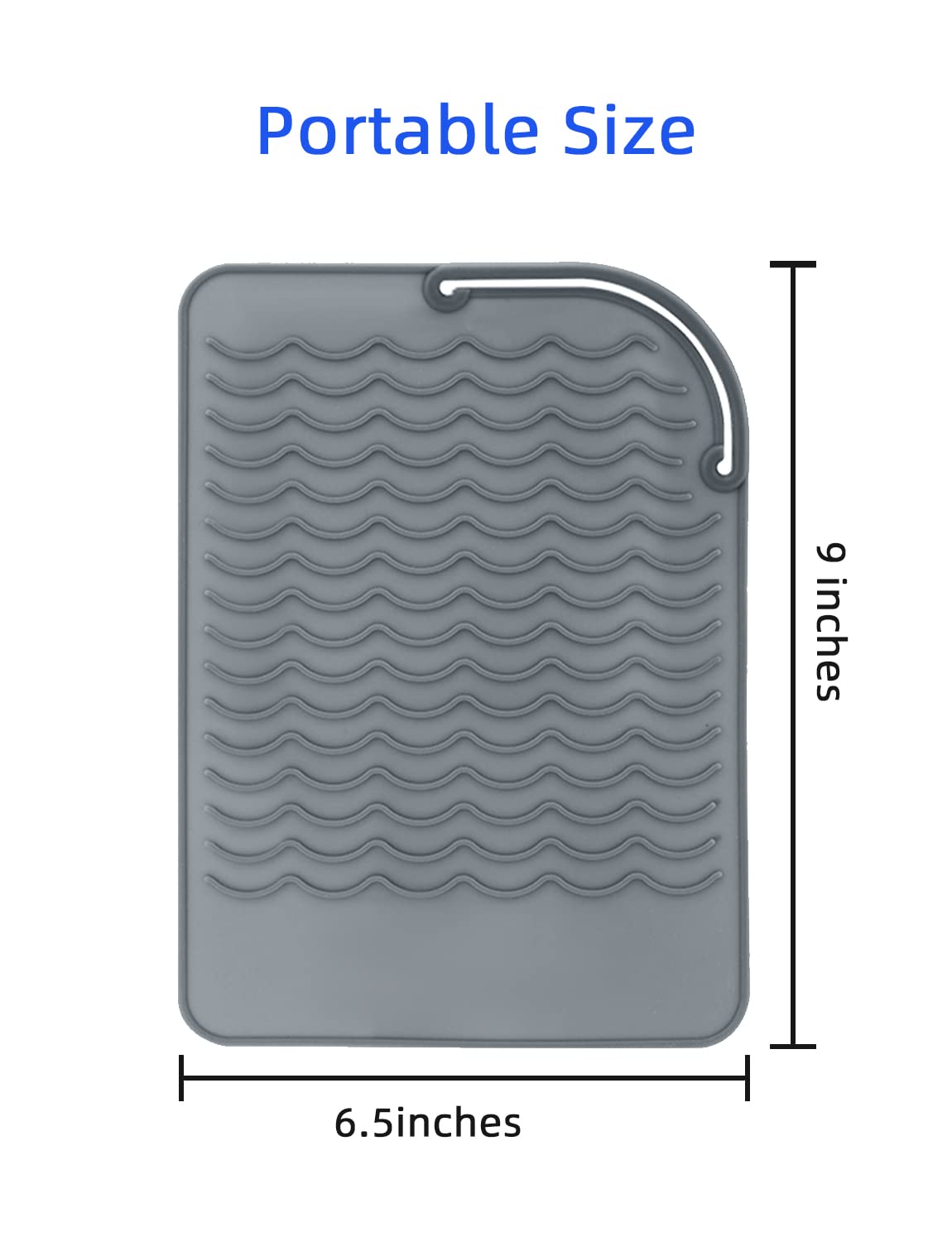 Curling Iron Holder, Heat Resistant Silicone Mat, Portable, Fast Chilling, Food Grade Material for Curling Iron, Hair Straightener, Curling Wand Storage, Grey