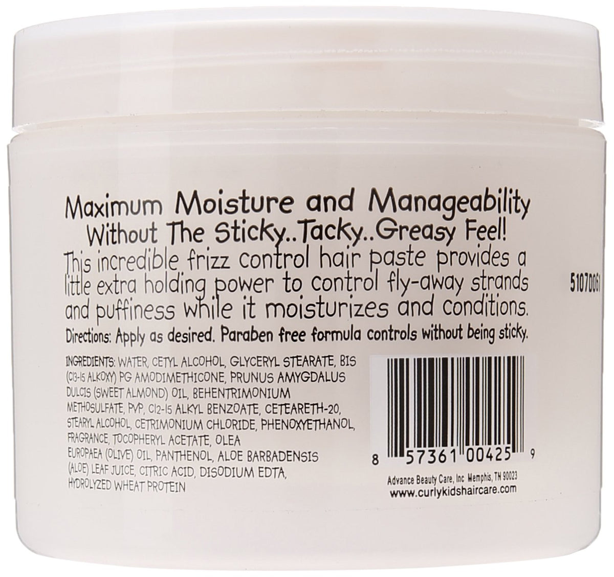 - Frizz Control & Edge Smoothing for Kids – Tame flyaways, smooth edges, and control puffy curls with CurlyKids Frizz Control Paste. This kids’ haircare essential provides extra hold for children’s curly, kinky, and coily hair, delivering sleek, defined styles without stiffness or residue.