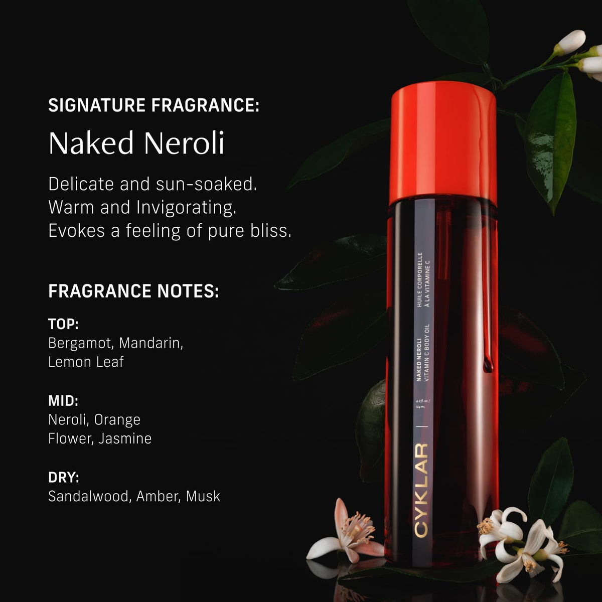 CYKLAR Vitamin C Body Oil for Women and Men. Moisturizing Naked Neroli Scented Body Serum for Glowing Skin. Nourishing, Hydrating After-Shower and Bath Skin Care Moisturizer, 4.2 Fl Oz