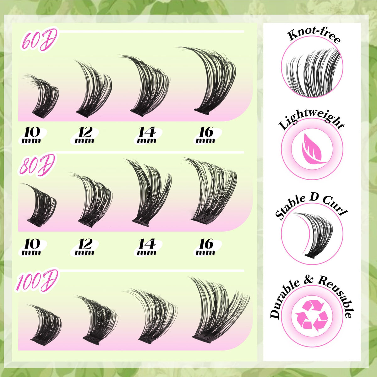 D-Curly Cluster Eyelash Extensions offer 480 pieces of volume lash extensions perfect for DIY enthusiasts and beginners. These wispy eyelash clusters provide a natural, full, and thick look to individual lashes, ranging from 10mm to 16mm in length. Achieve stunning eyelash styles effortlessly with this versatile set.