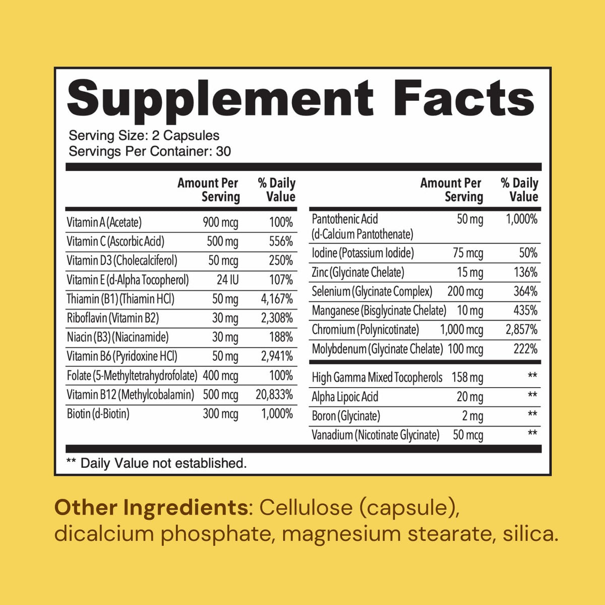 Ameo Life Chelated Daily Multivitamins for Adult Men and Women - Multi Vitamin Supplement with Zinc, Biotin, Iodine, Chromium, Manganese and Vitamins A, B6, B12, C, D and E - 60 Capsules