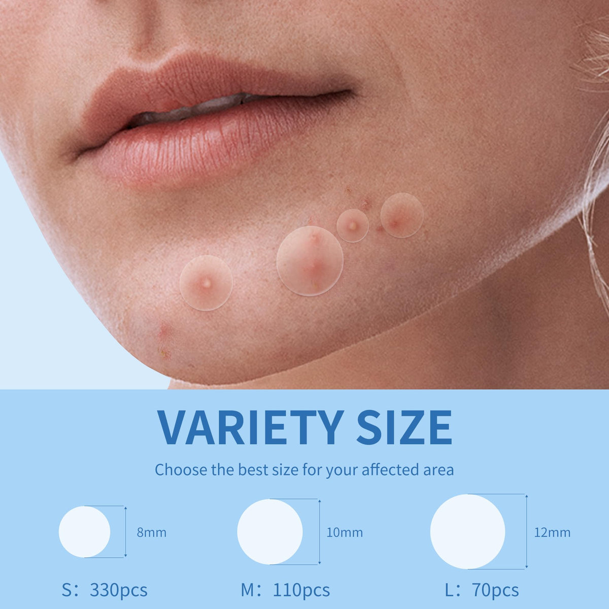Daolyo Pimple Patches for Face, 3 Size 510 Counts Hydrocolloid Acne Patches for Covering Zits and Blemishes, Spot Stickers with Salicylic Acid, Tea Tree Oil & Calendula Oil(8mm,10mm,12mm)