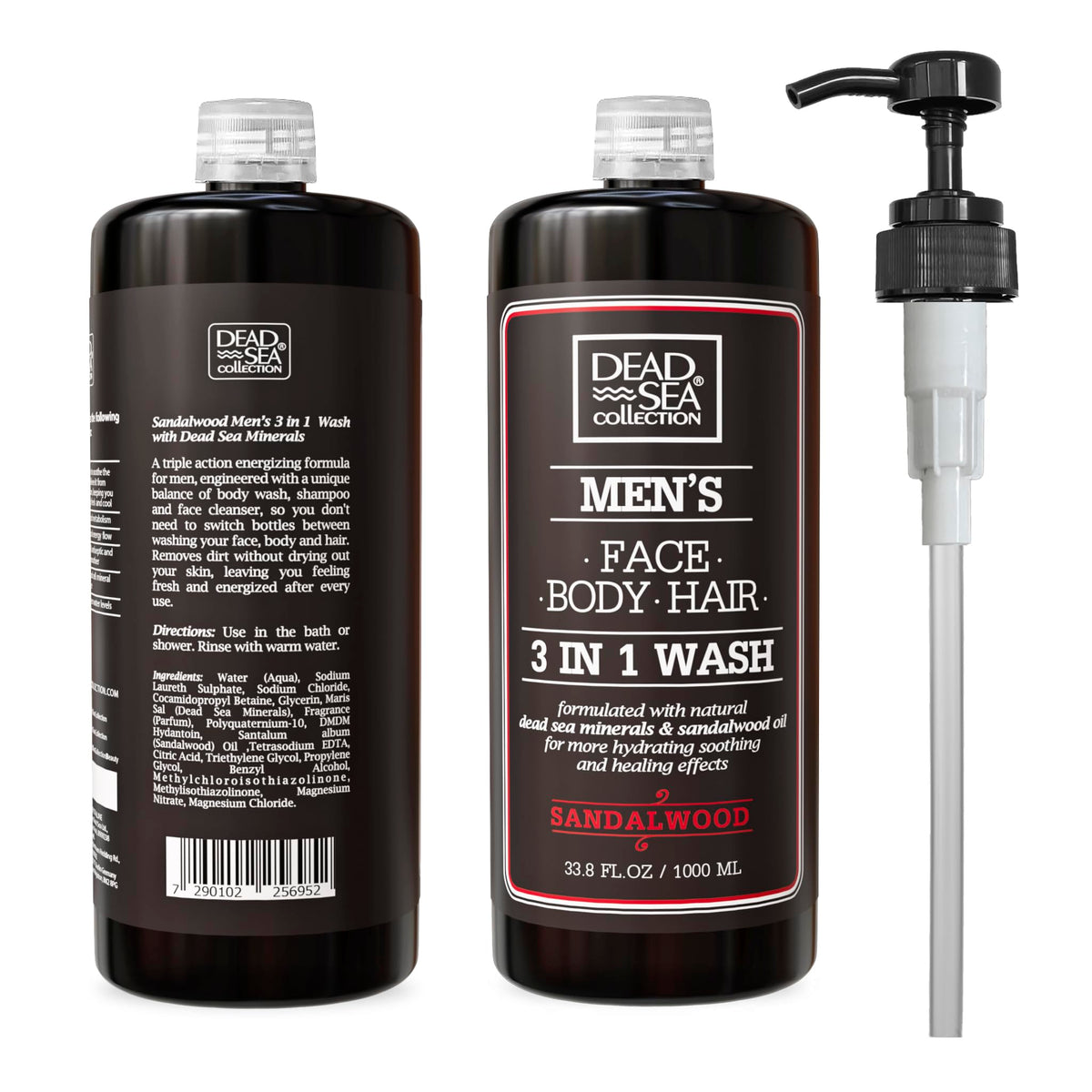 Dead Sea Collection Mens Body Wash 3 in 1 – Sandalwood Body Wash for Men – Shower Gel – Shampoo – Shower Soap for Face and Hair (33.8 Fl. Oz)