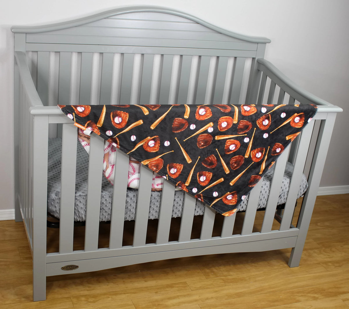 Dear Baby Gear Deluxe Reversible Baby Blankets, Custom Minky Print Baseball Bat Glove, 38 Inches by 29 Inches