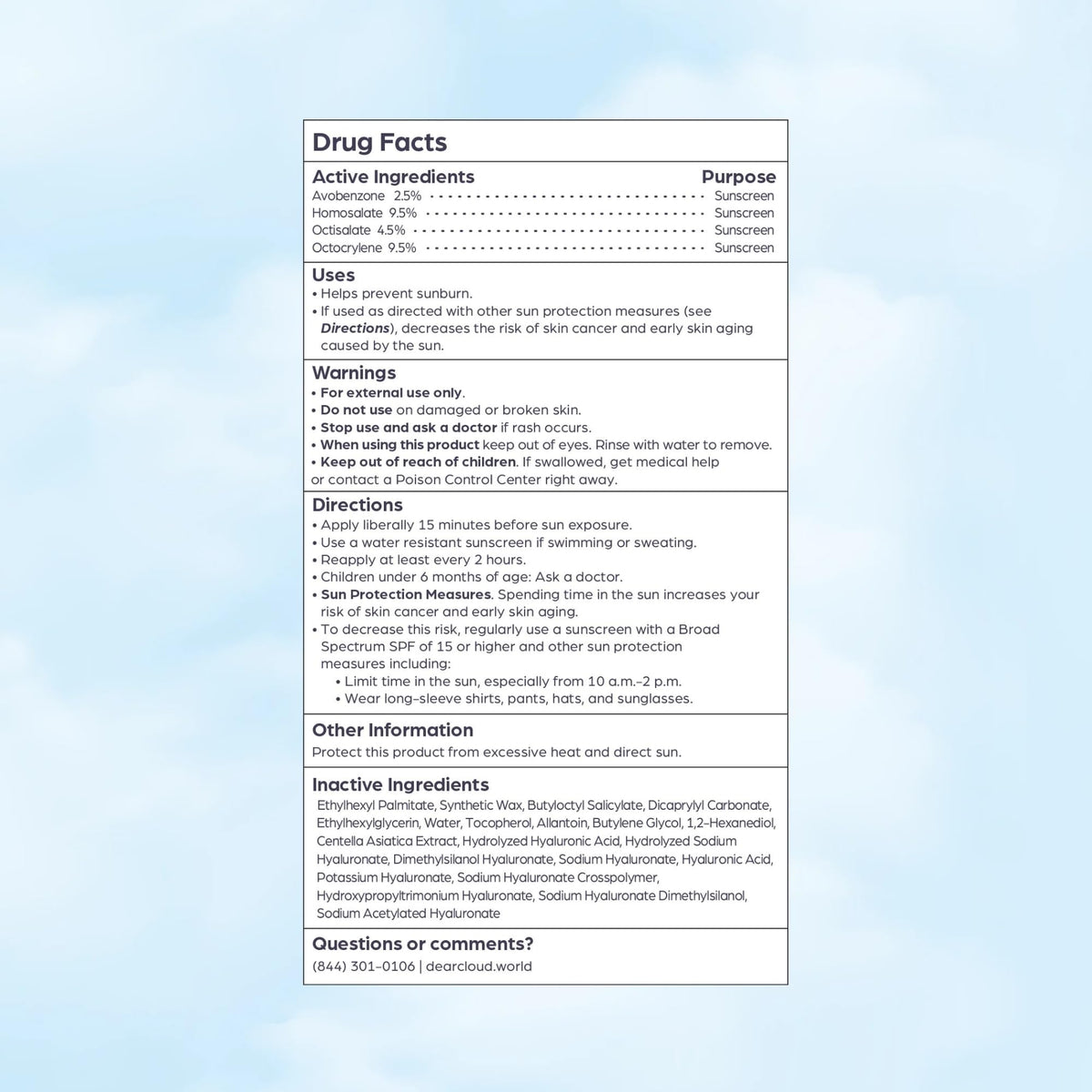 Ingredients: Inactive Ingredients Ethylhexyl Palmitate, Synthetic Wax, Butyloctyl Salicylate, Dicaprylyl Carbonate, Ethylhexylglycerin, Water, Tocopherol, Allantoin, Butylene Glycol, 1,2Hexanediol, Centella Asiatica Extract, Hydrolyzed Hyaluronic Acid, Hydrolyzed Sodium Hyaluronate, Dimethylsilanol Hyaluronate, Sodium Hyaluronate, Hyaluronic Acid, Potassium Hyaluronate, Sodium Hyaluronate Crosspolymer, Hydroxypropyltrimonium Hyaluronate, Sodium Hyaluronate Dimethylsilanol, Sodium Acetylated Hyaluronate