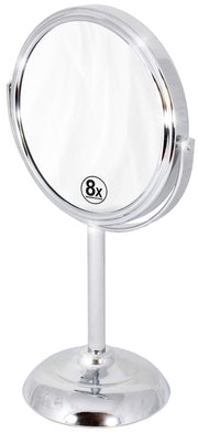 Decobros 6-inch Tabletop Two-Sided Swivel Vanity Mirror with 8x Magnification, 11-inch Height, Chrome Finish