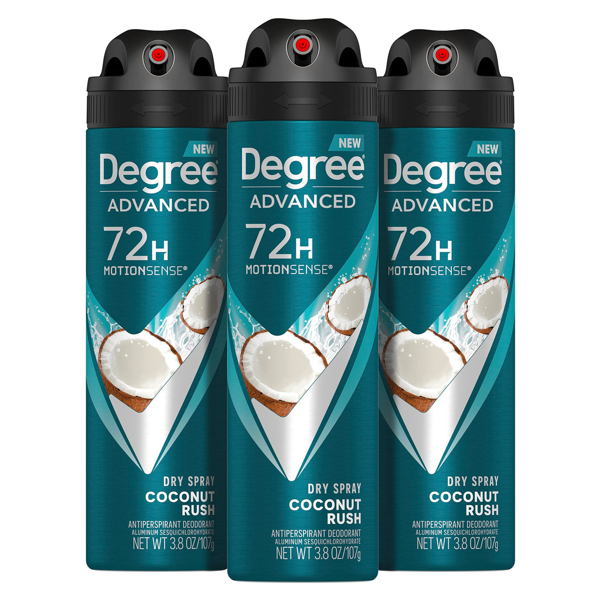 Degree Men Advanced Antiperspirant Deodorant Dry Spray Coconut Rush 3 Count 72-Hour Sweat and Odor Protection Deodorant for Men With MotionSense Technology 3.8 oz