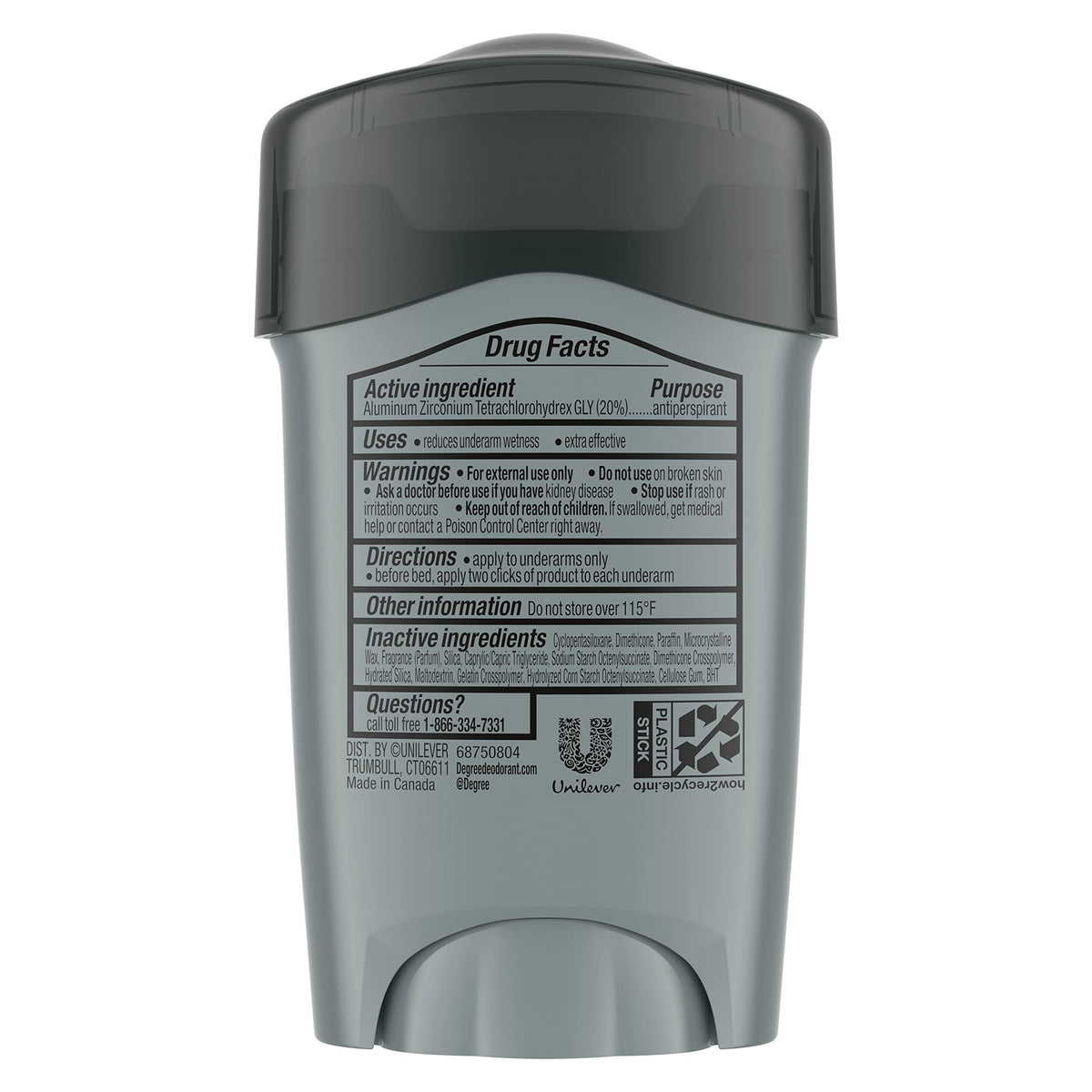 Directions :: For maximum protection, apply to underarms before going to bed. While resting, the Clinical+ formula acclimates to the body, forming a deep level of protection. This protection lasts throughout the next day, even after a shower. Degree Men Clinical+ can also be applied in the morning.